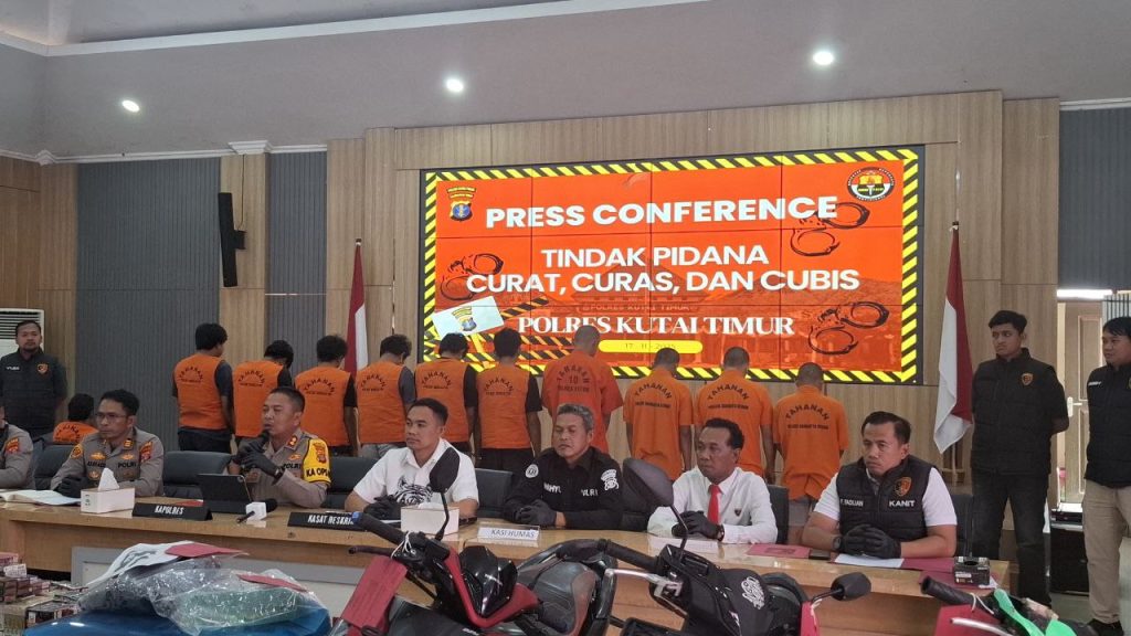 KUTAI TIMUR – Polres Kutai Timur memaparkan capaian pengungkapan kasus kejahatan yang terjadi sepanjang Oktober hingga November 2025. Dalam rentang waktu tersebut, jajaran kepolisian berhasil menuntaskan 23 perkara pencurian, meliputi pencurian dengan pemberatan (curat), pencurian dengan kekerasan (curas), hingga pencurian biasa (cubis). Selain itu, satu kasus kekerasan dalam rumah tangga (KDRT) juga berhasil ditangani. Dari seluruh kejadian yang ditangani, total kerugian diperkirakan mencapai Rp97 juta.