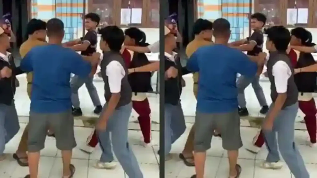 Situasi kemudian memanas hingga berujung pada aksi adu jotos antara oknum guru dan beberapa siswa. Sejumlah murid terlihat mendekat dan terjadi kontak fisik yang berlangsung singkat namun cukup menghebohkan. Guru-guru lain yang berada di lokasi segera bertindak untuk melerai keributan tersebut. Oknum guru kemudian diamankan dan dibawa masuk ke ruangan guna menghindari konflik yang lebih luas.
