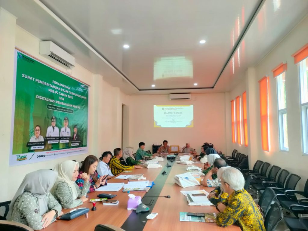 PASER – Badan Pendapatan Daerah (Bapenda) Kabupaten Paser menyerahkan sebanyak 11.547 Surat Pemberitahuan Pajak Terhutang (SPPT) Pajak Bumi dan Bangunan Perdesaan dan Perkotaan (PBB-P2) untuk wilayah Kecamatan Kuaro pada tahun 2026. Penyerahan dokumen tersebut dilakukan dalam kegiatan Petugas Pemungut Pajak Desa dalam Rangka Penyampaian SPPT PBB-P2 dan Tata Cara Pembayaran Digitalisasi Tahun 2026 yang digelar di ruang rapat Bapenda Kabupaten Paser, Tana Paser, Rabu (05/03/2026).