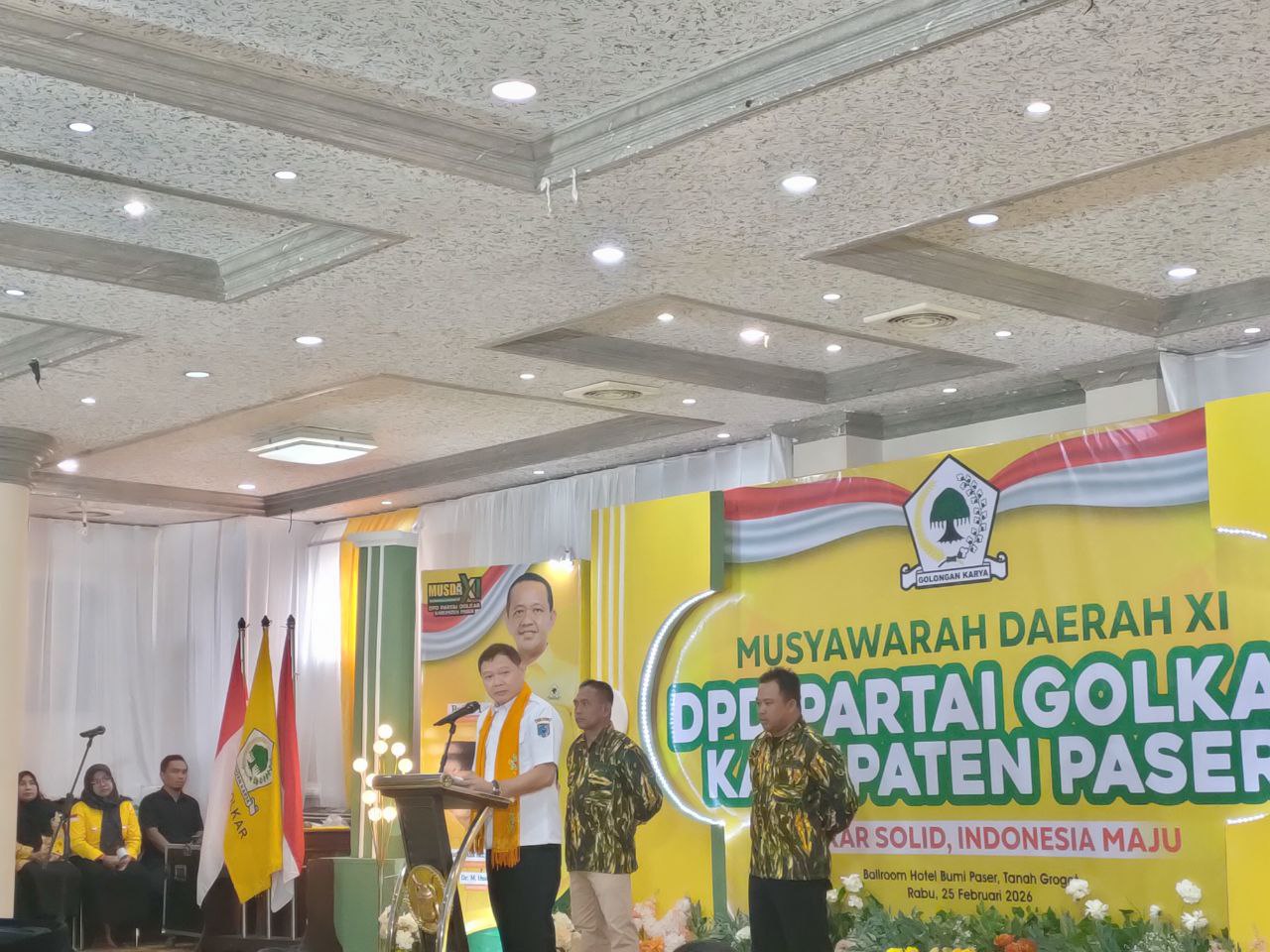 PASER – Bupati Paser, Fahmi Fadli, menghadiri sekaligus membuka Musyawarah Daerah (Musda) XI Partai Golongan Karya (Golkar) Kabupaten Paser yang digelar di Ballroom Hotel Bumi Paser, Tana Paser, Rabu (25/02/2026). Forum lima tahunan tersebut menjadi momentum evaluasi kepengurusan sebelumnya sekaligus penetapan arah kebijakan dan kepemimpinan partai untuk periode lima tahun mendatang.