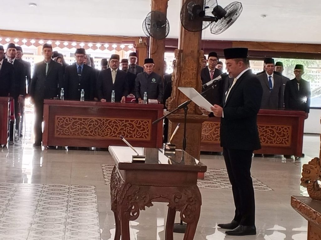 Bupati Probolinggo dr. H. Muhammad Haris, M.Kes melantik 61 pejabat eselon III dan 69 eselon IV di lingkungan Pemerintah Kabupaten Probolinggo, Senin (6/10/2025) bertempat di Pendopo Prasaja Ngesti Wibawa Kota Probolinggo. (Foto : Rachmat)