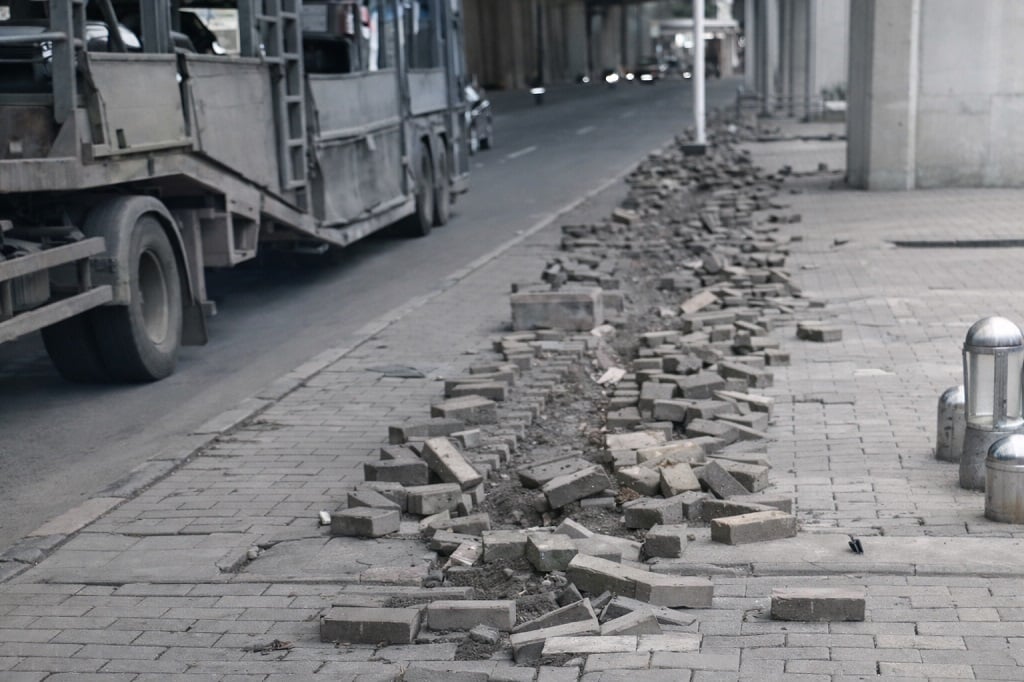 Dalam rekaman yang beredar pada Senin (26/01/2026), tampak sejumlah paving block terangkat dan tersusun tidak beraturan di sepanjang trotoar. Kerusakan tersebut terlihat sejajar lurus dengan beberapa tiang lampu penerangan jalan umum (PJU), sehingga memunculkan dugaan kuat bahwa pembongkaran dilakukan untuk mengambil kabel yang berada di bawah permukaan trotoar.