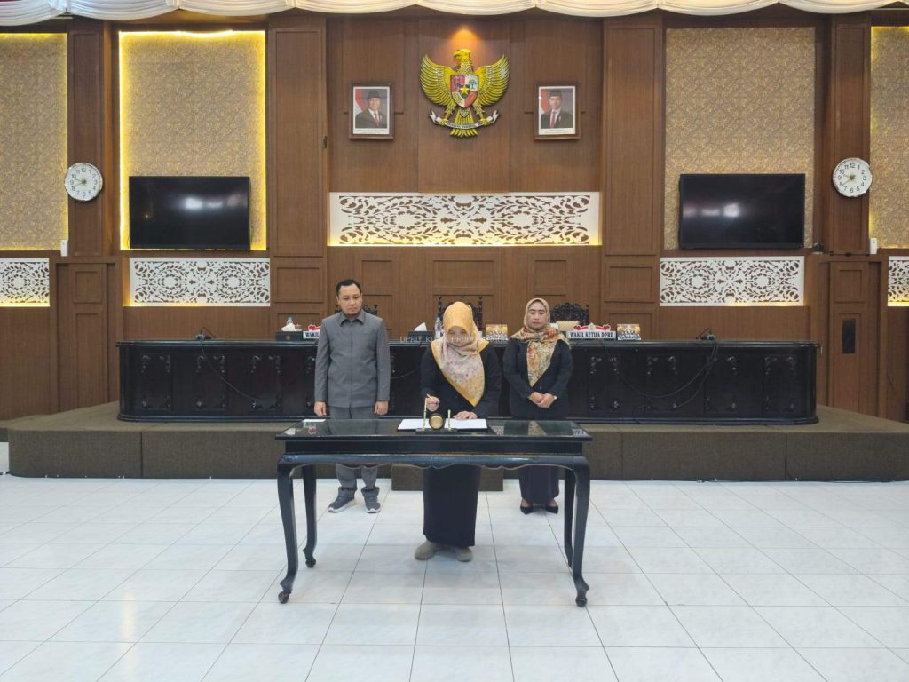 Ketua DPRD Kota Probolinggo menandatangani Keputusan DPRD tentang Penetapan Pimpinan dan Anggota Panitia Khusus DPRD terkait Pembahasan Laporan Keterangan Pertanggungjawaban Walikota Probolinggo Tahun Anggaran 2025, tanggal 30 Maret 2026.(Foto : Sekwan)