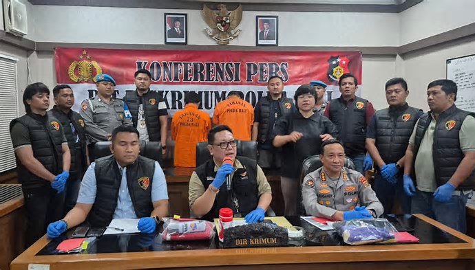 Direktur Reserse Kriminal Umum (Dirreskrimum) Polda Bali Kombes I Gede Adhi Mulyawarman menjelaskan, kedua pelaku bernama Kharisma Arai Cahya (24) dan Kadek Andy Krisna Putra (25). Mereka ditangkap secara terpisah di dua lokasi berbeda, yakni Kelurahan Jimbaran dan Kelurahan Pemogan. “Kurang dari empat jam setelah (pelaku) corat-coret bendera, kami dari tim Resmob Ditreskrimum Polda Bali dan Jatanras Polres Jembrana langsung menangkap dua pelaku,” ujarnya di kantor Polda Bali, Kamis (20/11/2025).