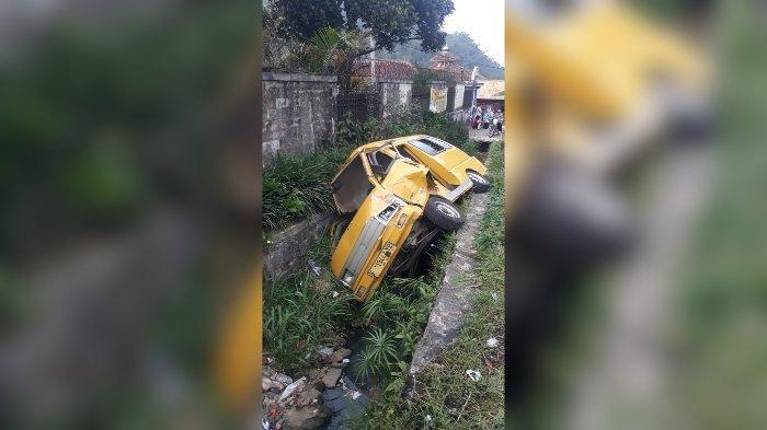 Hindari Kendaraan, Angkot Terperosok ke Parit