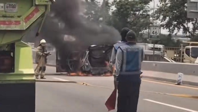 Honda Jazz Terbakar di JORR, Pengemudi Kabur