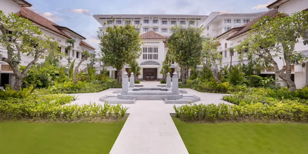 Maria menjelaskan konsep desain hotel kini lebih modern namun tetap mempertahankan sentuhan khas Indonesia melalui penggunaan material kayu serta ornamen ukiran tradisional.