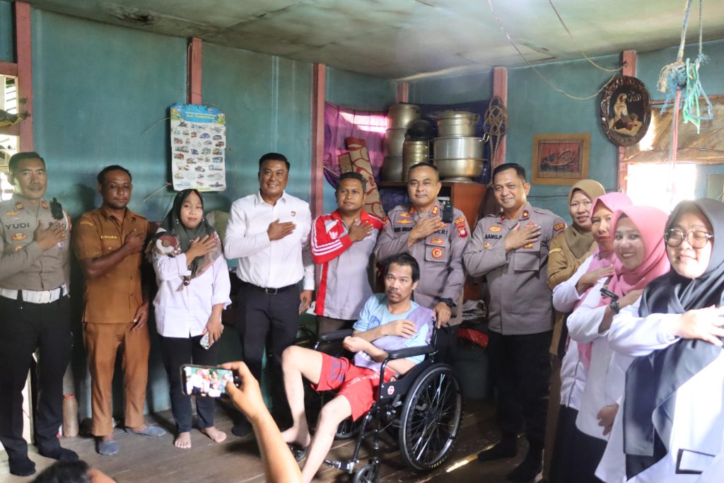 MELAWI, PRUDENSI.COM-Wujud kepedulian yang membutuhkan, Kapolres Melawi AKBP Harris Batara Simbolon,S.I.K, S.H, M.Tr.Opsla memberikan bantuan dua kursi roda kepada Hendri dan Hanifan warga desa Sidomulyo Kecamatan Nanga Pinoh Kabupaten Melawi, Selasa (14/10/25).