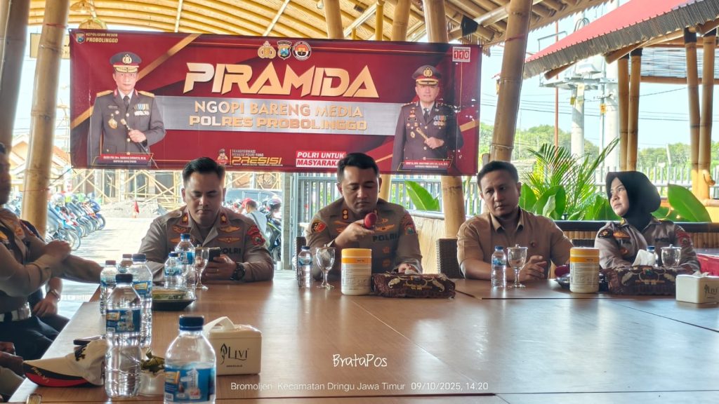 PROBOLINGGO, PRUDENSI.COM-Bertajuk Ngopi Bareng bersama media Kamis (9/10/2025) di Restaurant Bambu Pring di kawasan Dringu, Kapolres Probolinggo AKBP M. Wahyudin Latif mengajak insan pers untuk turut menjaga kondisi keamanan dan ketertiban masyarakat di wilayah hukum Kabupaten Probolinggo.