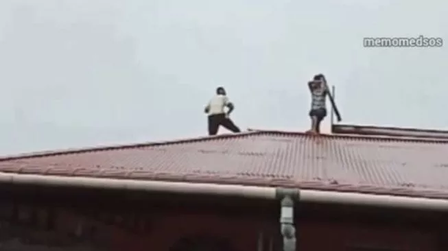 Dalam rekaman tersebut, pria itu tampak berpindah-pindah di atas genteng rumah warga. Ketika petugas mencoba mendekat, ia terlihat panik hingga akhirnya terperosok dan membuat bagian atap rumah jebol. Di bawah rumah, warga terlihat bersiaga untuk menangkap pria tersebut apabila terjatuh. Peristiwa itu sontak mengundang perhatian warga sekitar dan membuat situasi menjadi heboh.
