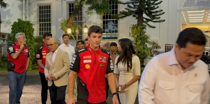 Salah satu yang paling mencuri perhatian adalah Marc Marquez. Sang juara dunia MotoGP 2025 baru saja memastikan gelar di Jepang akhir pekan lalu, kemudian langsung bertolak ke Indonesia. Setibanya di Tanah Air, Marquez diundang ke Istana Kepresidenan untuk bertemu Presiden Prabowo Subianto. Didampingi Menteri Pemuda dan Olahraga Erick Thohir, serta mengenakan seragam tim Ducati berwarna merah, The Baby Alien tampil percaya diri di hadapan Presiden.