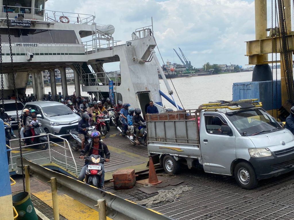 Kesibukan Kendaraan melewati penyeberangan Feri Bardan-Siantan Pontianak.