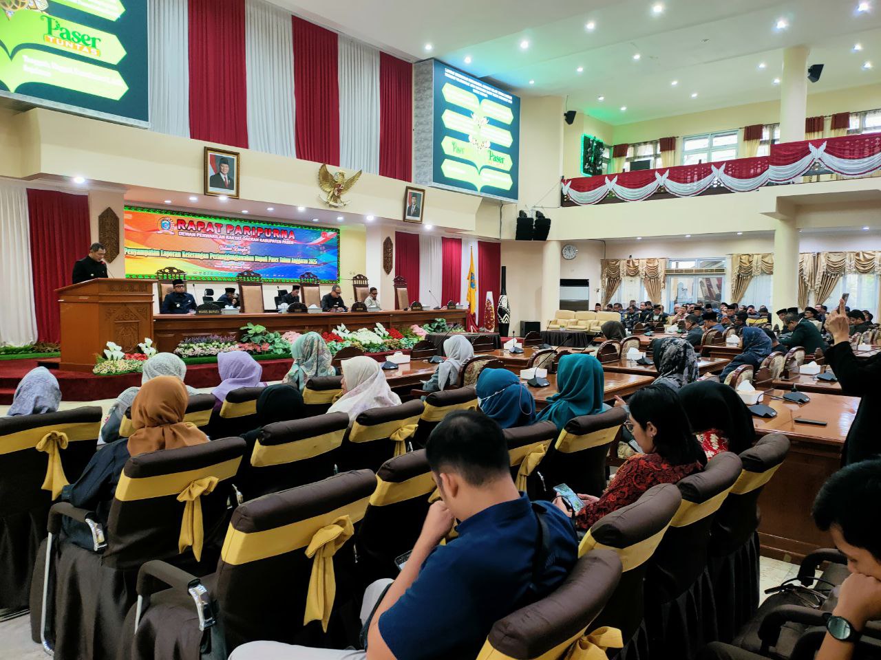 Rapat paripurna tersebut dipimpin langsung oleh Ketua DPRD Kabupaten Paser Hendra Wahyudi dan dihadiri Wakil Bupati Paser Ikhwan Antasari, unsur Forum Koordinasi Pimpinan Daerah (Forkopimda), pimpinan serta anggota DPRD, serta para kepala perangkat daerah di lingkungan Pemerintah Kabupaten Paser.