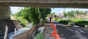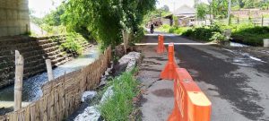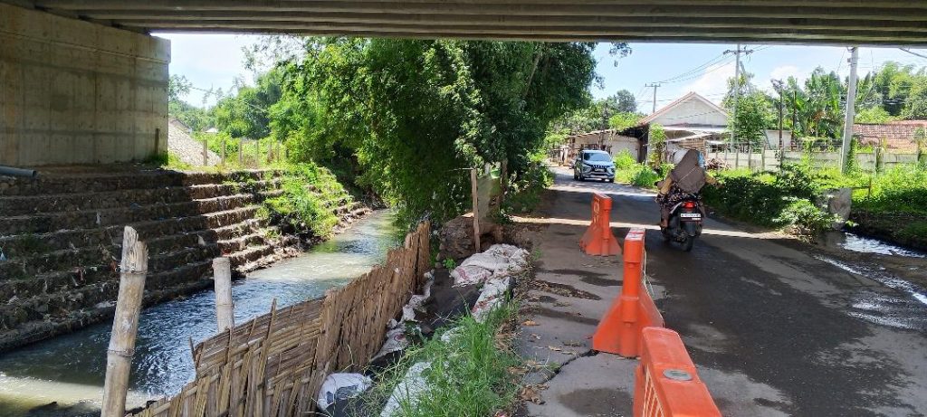 PROBOLINGGO, PRUDENSI.COM-Sudah hampir setahun ini pembangunan plengsengan sungai yang terletak di Dusun Kalijati, Desa Jabung Wetan, Kecamatan Paiton, Kabupaten Probolinggo tepatnya berada di bawah jembatan Tol STA 16+950 tak kunjung diselesaikan oleh pihak manajemen KSO Tol Prosiwangi Paket 2 (Kraksaan-Paiton). Kini kondisinya semakin memperihatinkan, tanah tergerus bibir sungai longsor semakin melebar, potensial merambat area aspal akibat curah hujan tinggi, akibat banjir beberapa waktu yang lalu, bahkan bagian aspal mulai retak melebar memakan badan jalan utama.