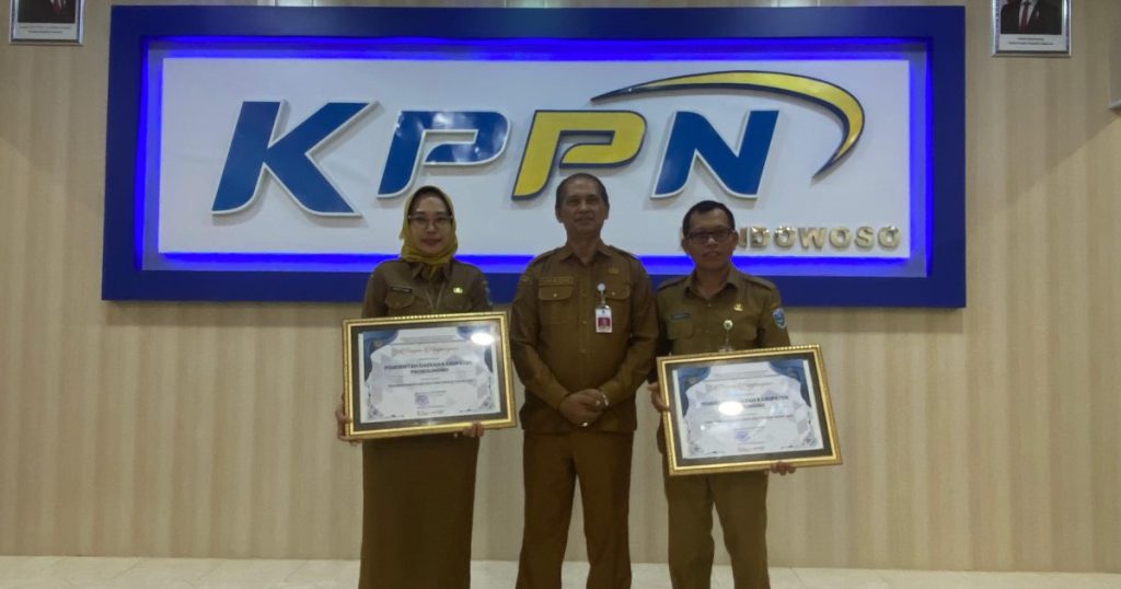 Penghargaan diterima oleh Kepala Badan Pengelolaan Pendapatan, Keuangan dan Aset Daerah (BPPKAD) Kabupaten Probolinggo Kristiana Ruliani serta Kepala Dinas Pemberdayaan Masyarakat dan Desa (DPMD) Kabupaten Probolinggo Munaris didampingi Inspektur Kabupaten Probolinggo Imron Rosyadi.