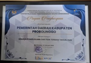 BONDOWOSO, PRUDENSI.COM– Pemerintah Kabupaten (Pemkab) Probolinggo menorehkan prestasi membanggakan dengan meraih dua penghargaan dalam Focus Group Discussion (FGD) Penyaluran Transfer ke Daerah dan Penyaluran Dana Desa Triwulan I Tahun 2026 lingkup Wilayah Kerja Kantor Pelayanan Perbendaharaan Negara (KPPN) Bondowoso, Selasa (24/2/2026).