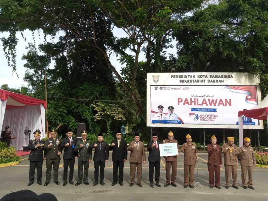 SAMARINDA – Pemerintah Kota Samarinda menggelar upacara peringatan Hari Pahlawan Nasional di lapangan parkir Balai Kota Samarinda, Senin (10/11/2025) pagi. Kegiatan berlangsung khidmat, dipimpin langsung oleh Wakil Wali Kota Samarinda, Saefuddin Zuhri, dan diikuti jajaran aparatur sipil negara (ASN), TNI-Polri, pelajar, serta berbagai organisasi masyarakat.
