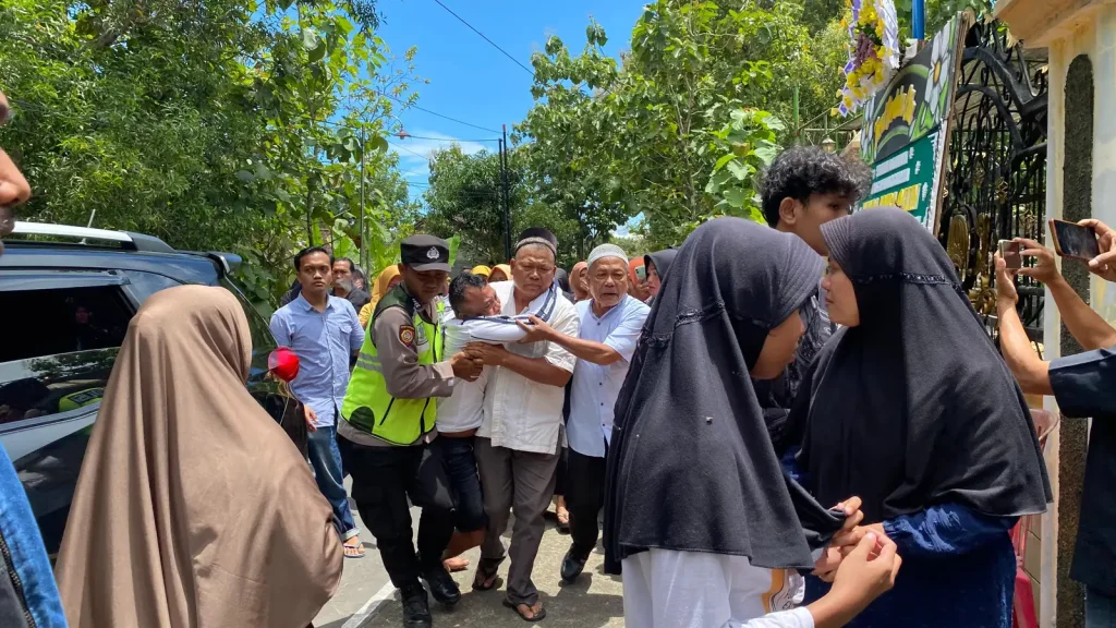 Purwanto terlihat terus menangis sambil menatap jenazah anaknya. Kakak perempuannya juga tampak larut dalam kesedihan. Beberapa pelayat yang hadir ikut meneteskan air mata menyaksikan momen tersebut. Kehilangan yang dialami Purwanto bukan hanya kehilangan anak, tetapi juga kehilangan pasangan hidup yang selama ini menemaninya membangun keluarga.