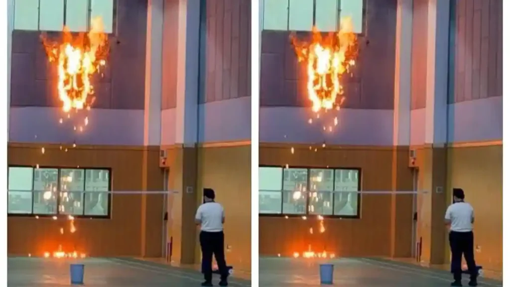 Berdasarkan keterangan saksi mata di lokasi kejadian, sebelum api membesar, terlihat kilatan petir yang menyambar kabel gondola di bagian luar gedung. Sambaran tersebut diduga memicu percikan api yang kemudian menjalar ke tembok dinding bangunan di lantai lima. Melihat kondisi tersebut, pegawai sekolah langsung mengambil langkah cepat dengan menghubungi petugas pemadam kebakaran untuk mencegah api meluas ke area lain.