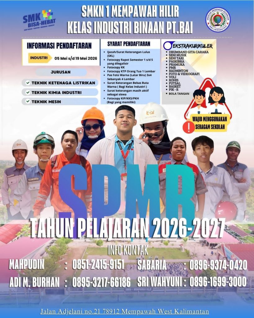 MEMPAWAH, PRUDENSI.COM-SMKN 1 Mempawah Hilir secara resmi mengumumkan pembukaan pendaftaran peserta didik baru untuk Kelas Industri Binaan PT. BAI tahun pelajaran 2026/2027.
