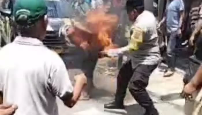 Terduga pelaku kemudian diikat di tiang listrik di sudut Gang 3. Dalam kondisi tak berdaya, tubuhnya disiram dengan cairan yang diduga bahan bakar minyak (BBM). Saat petugas hendak mengamankan pelaku, salah satu warga nekat menyalakan api hingga membakar tubuh pria tersebut.