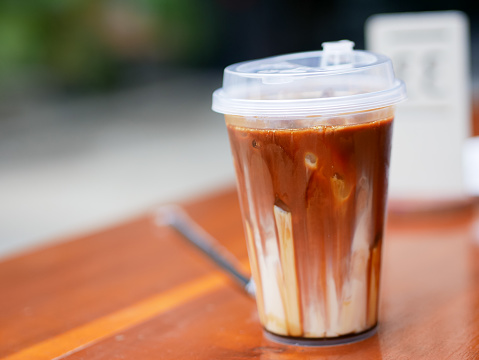 fresh brown sugar coffee drink in a transparent plastic cup