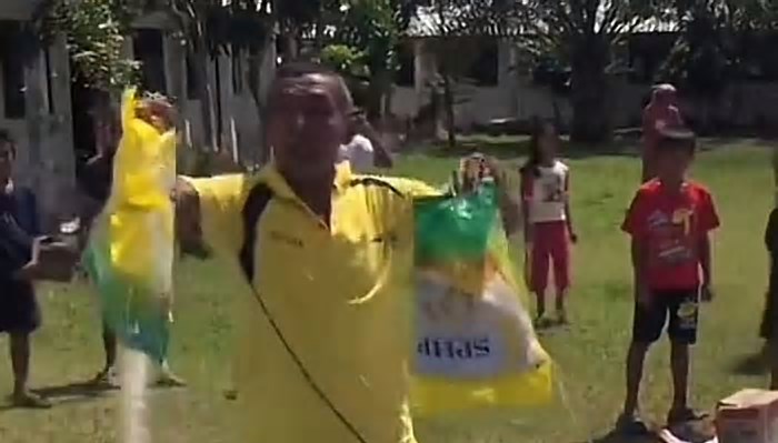 Dalam rekaman yang beredar pada Selasa (02/12/2025), terlihat helikopter menurunkan paket bantuan dengan cara melepaskannya dari udara. Begitu paket-paket itu jatuh ke tanah, sejumlah warga berlari mendekat dan berusaha mengumpulkan beras yang sebagian bungkusnya pecah akibat benturan. Sejumlah butiran beras terlihat berserakan dan bercampur tanah, memaksa warga mengaisnya agar tetap dapat dimanfaatkan.